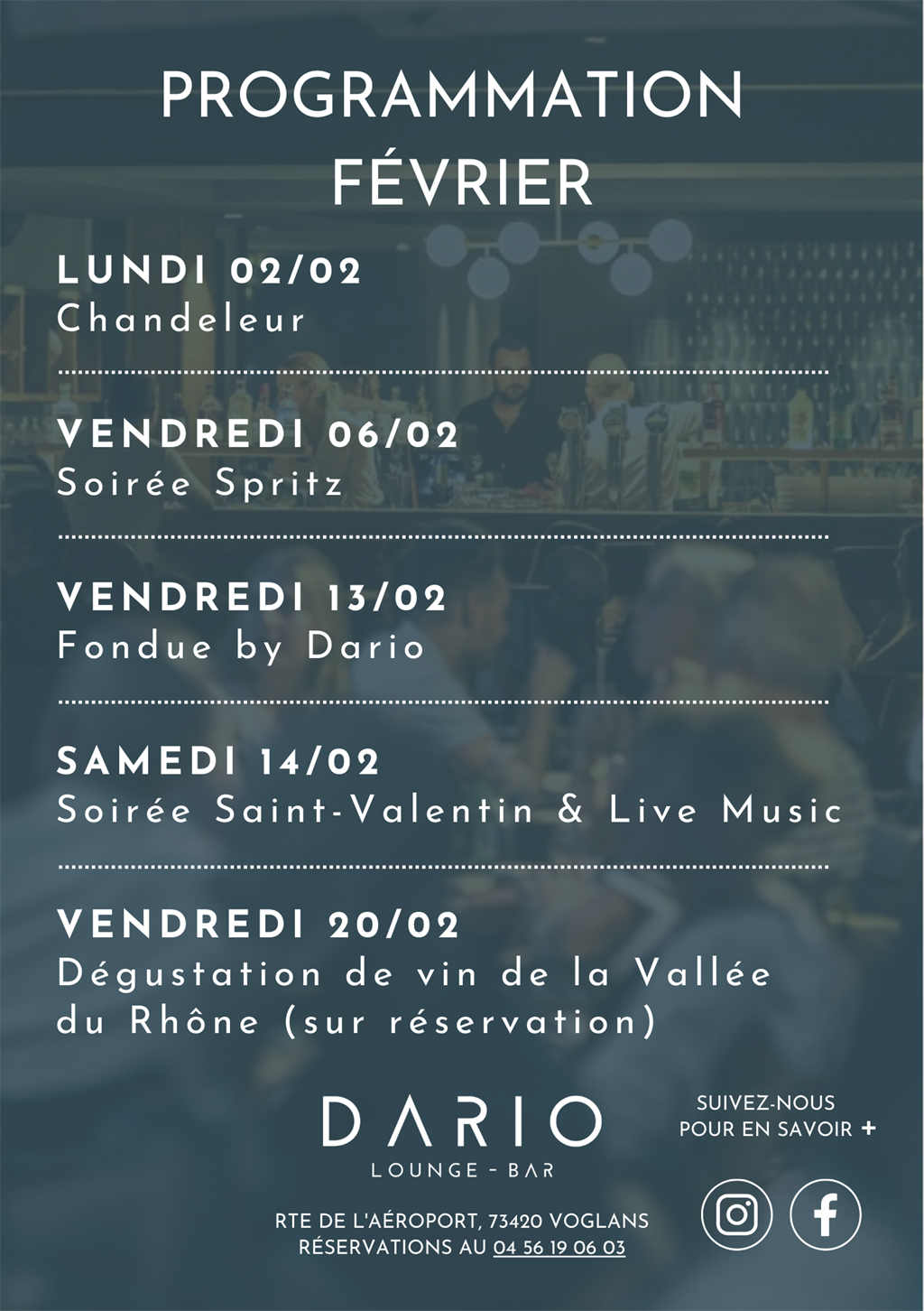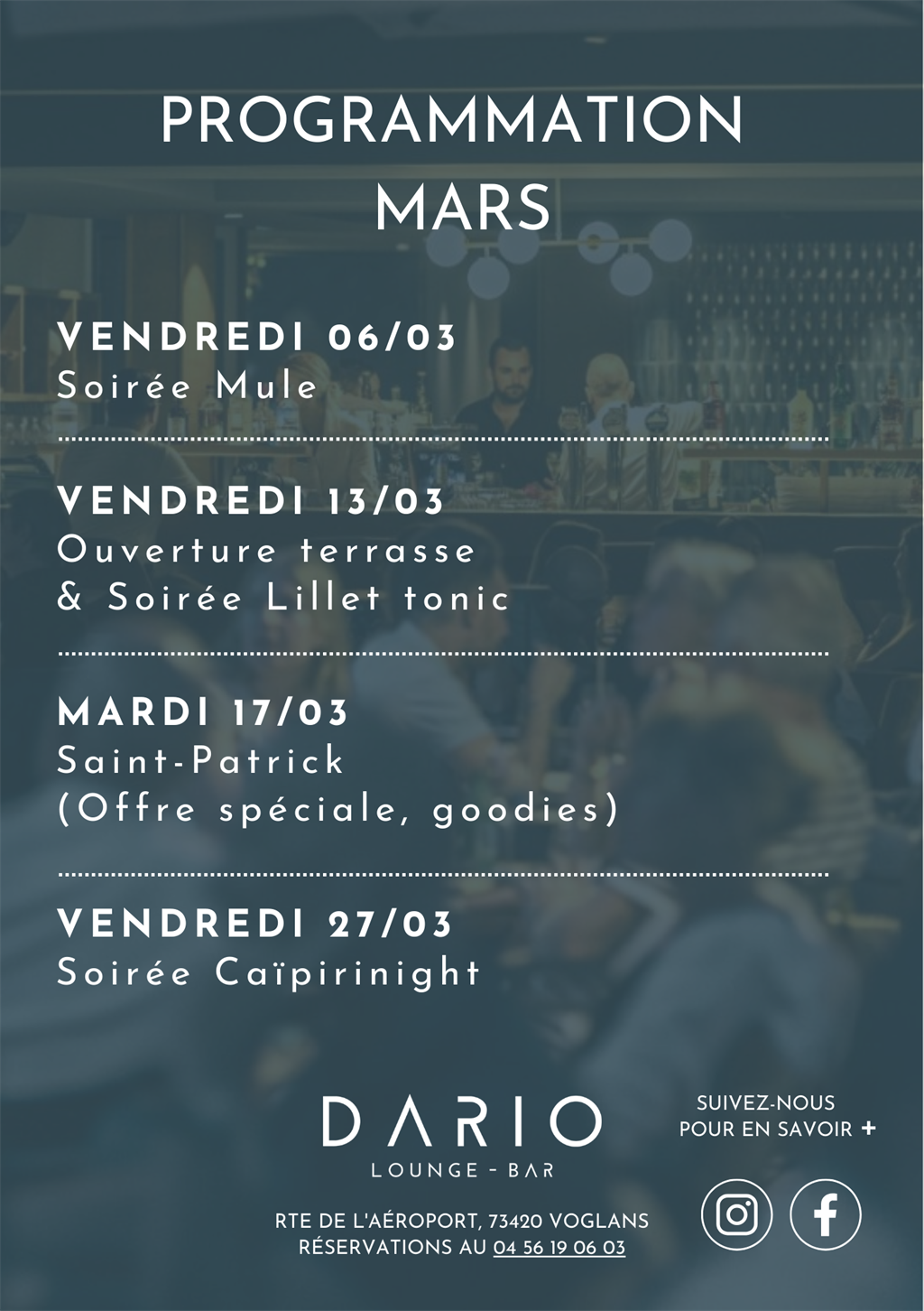 Retrouvez ci-dessous notre programme du mois, le Dario vous promet des soirées et des souvenirs mémorables.
