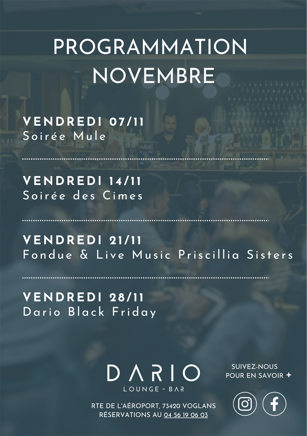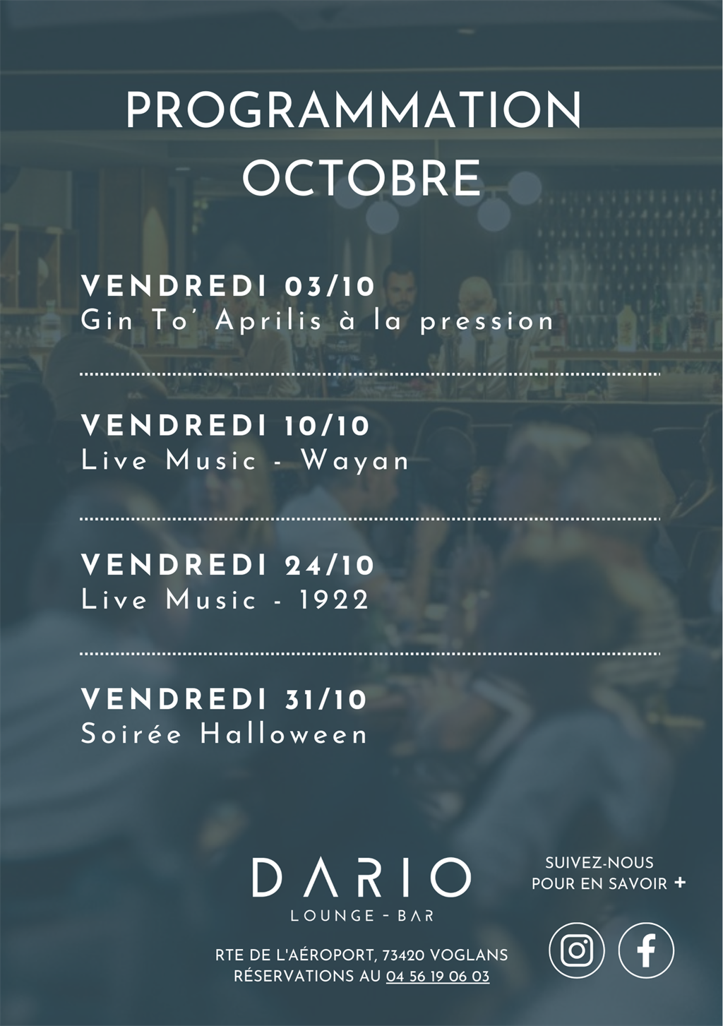Retrouvez ci-dessous notre programme du mois, le Dario vous promet des soirées et des souvenirs mémorables.
